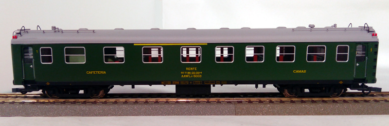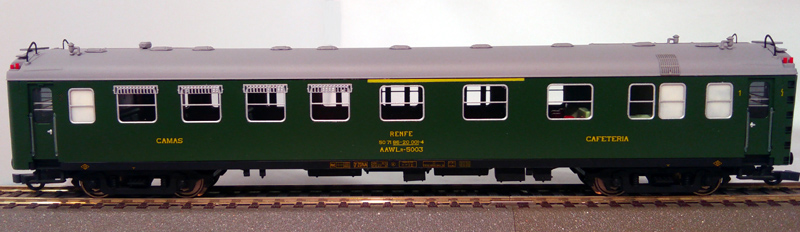 COCHES MIXTOS AAWLR MODIFICADOS Construidos desde el año 1952 a 1953 por S.E.C.N. Inicialmente eran coches mixtos con tres departamentos de primera clase y cuatro cabina en forma de Z con dos camas, dos WC y plataformas de 1.000 mm. Posteriormente ocho de estos coches fueron transformados en Coches Mixtos de 1ª - Camas - Cafetería, formando la serie AAWLR 5000. El kit contiene: