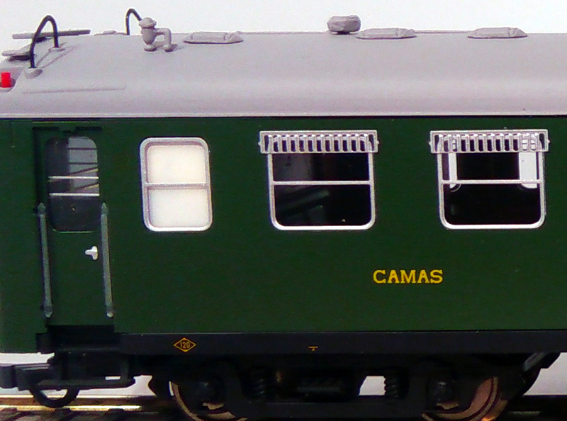 Los derivabrisas en los departamentos de cama eran lo más destacable exteriormente de esta serie. También se ha reproducido un pequeño letrero indicador que lucían en la parte alta de la puerta indicando el número de camas vacías.